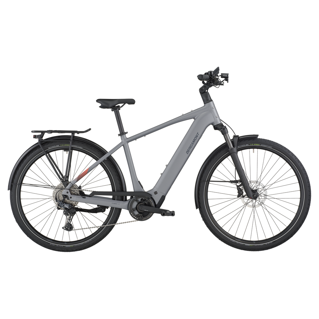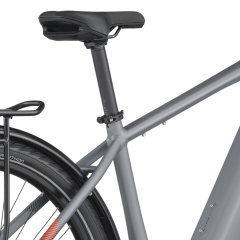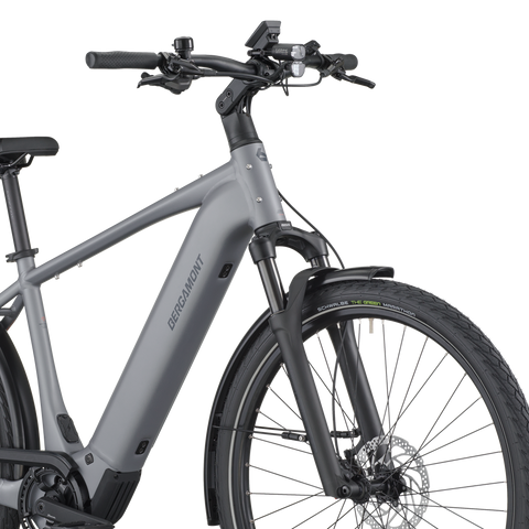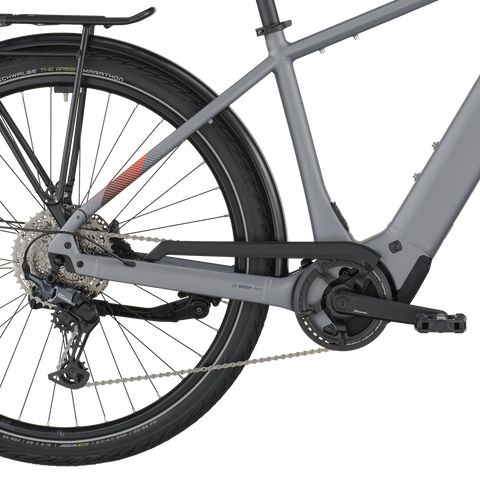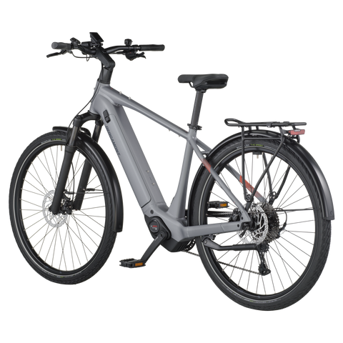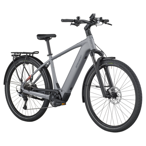 The E-Horizon Sport 10 is a fully equipped e-trekking bike with perfectly integrated components. It includes features such as LED lights with a rear brake light function that increase rider safety in urban environments. The rear carrier is approved for 27 kg and child transportation in combination with a Thule Yepp (Nexxt) 2 maxi seat. The classic derailleur drivetrain for efficient pedaling and shifting is a lightweight and proven concept, and the hydraulic disc brakes offer superior braking power and modulation even in adverse weather conditions.
