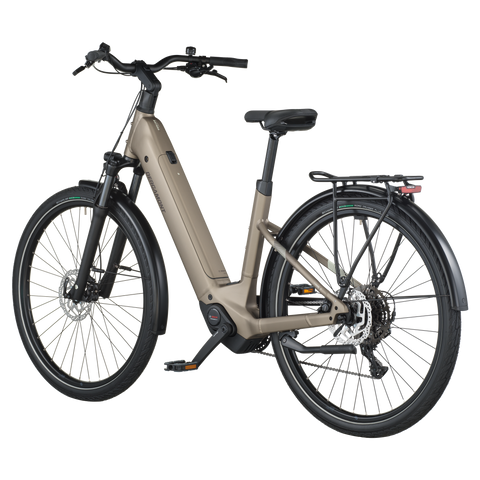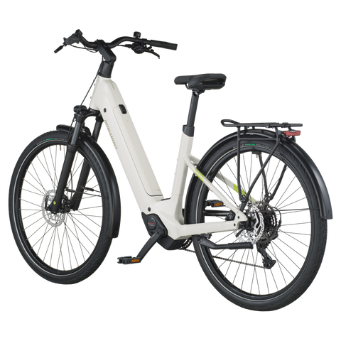 The E-Horizon Sport 30 Wave is a fully equipped e-trekking bike with a low step-over height and perfectly integrated components. It includes features such as LED lights with a rear brake light function that increase rider safety in urban environments. The rear carrier is approved for 27 kg and child transportation in combination with a Thule Yepp (Nexxt) 2 maxi seat. The classic derailleur drivetrain for efficient pedaling and shifting is a lightweight and proven concept, and the hydraulic disc brakes offer superior braking power and modulation even in adverse weather conditions.