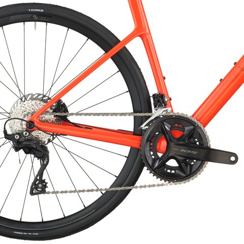 We equipped Addict 50 with the versatility for whatever ride you go on. Shimano's 105 mechanical 2x drivetrain delivers workhorse performance and reliability on a budget, and durable Syncros RP2.0 wheels on Schwalbe ONE tires are ready to go the distance.