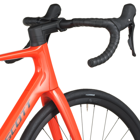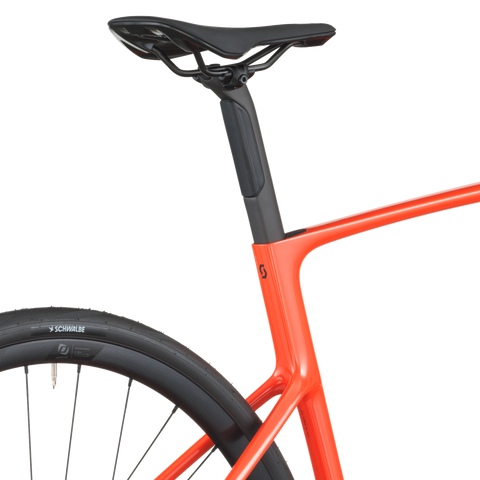 Geometry is open with a taller stack and a shorter reach than racing platforms. No need to pretzel yourself in the Addict to get rolling. Tire clearance is also open wide at a max of 38mm, so should you want to explore a mixed-surface ride, you’ll have the big tire cushion underneath and a comfortable power position in the saddle to log a big day way out there.