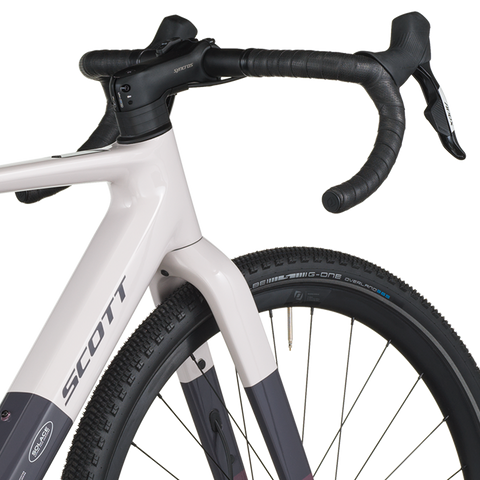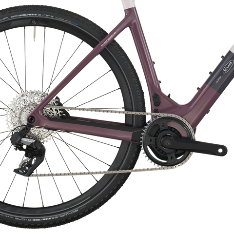 Controlling all the torque into forward propulsion are 50mm Schwalbe G-One Overland tires that provide critical traction on high-slip slopes and cushion to roll over rough terrain when you’re going flat out with Solace’s new powerband.