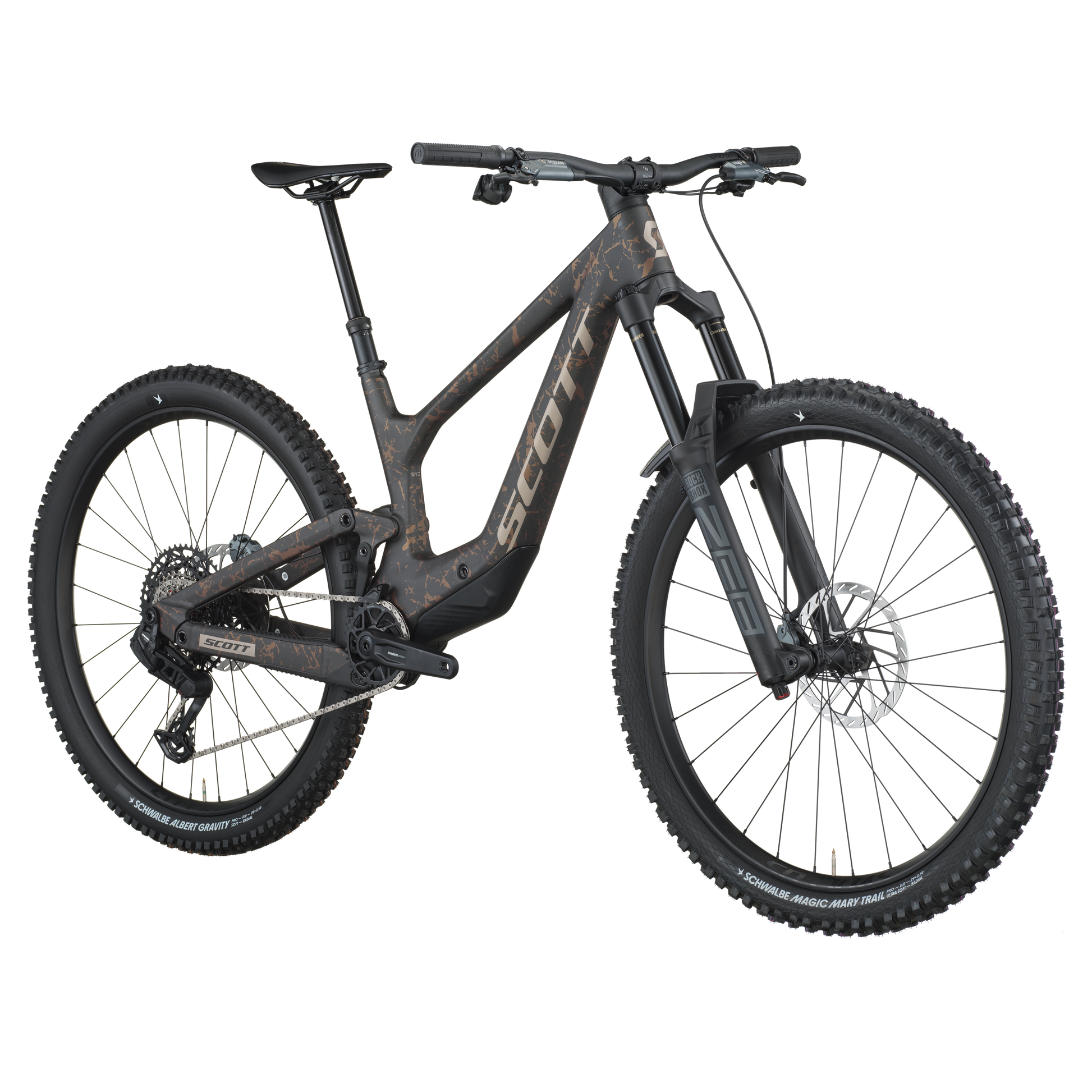 Rear ShockFOX FLOAT X NUDE EVOL Piggy Back Trunnion, SCOTT custom w. travel, geo adj.3 modes: Climb-Ramp Control-DescendCustom large Air volume, Comp & Reb. Adj.Travel 170-130-Climb, T205X65mm, Bearing Hardware